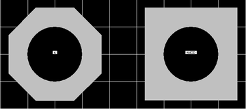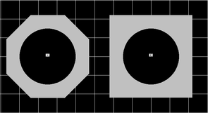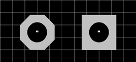 Для даної групи компонентів діаметр восьмикутної КП буде 2.2мм, а розміри прямокутної – 2.2х2.2мм (рис.11)