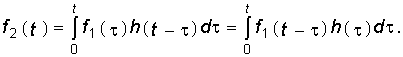 Интегралы наложения (8.12) и (8.13) представляют собой свертку входного сигнала с импульсной характеристикой цепи и широко применяются в теории электрических цепей и теории передачи сигналов. Ее физический смысл заключается в том, что вход ной сигнал f1(t) как бы взвешивается с помощью функции h(t—t): чем медленнее убывает со временем h(t), тем большее влияние на выходной сигнал оказывает более удаленные от момента наблюдения значение входного воздействия.