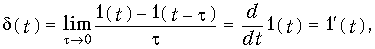 Между переходной g(t) и импульсной h(t) характеристиками линейной пассивной цепи существует определенная связь. Ее можно установить, если представить единичную импульсную функцию через предельный переход разности двух единичных функций величины 1/t, сдвинутых друг относительно друга на время t :