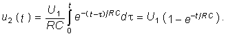 Пример. На вход RС-цепи подается скачок напряжения U1. Определить реакцию цепи на выходе с использованием интегралов наложения (8.12) и Дюамеля (8.11).