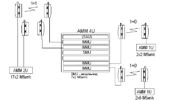 Для трафика со скоростью 8x2, 17x2 и 4x8 Мбит/с требуется также блок ключей/мультиплексоров (SMU). В магазин модуля доступа может быть также добавлен блок служебных каналов (SAU), что обеспечивает дополнительные интерфейсы для управления и аварийной сигнализации, служебных каналов и других специфических потребностей клиента.