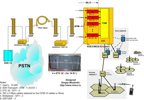 - сильно упрошенная архитектура GSM сети – телекоммуникационная система AXE/CME20 напрямую подсоединяется к SDH сети или к телекоммуникационной системе AXE ТФОП;