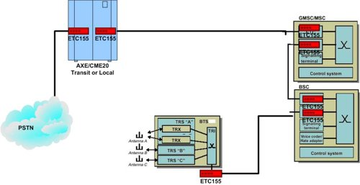ET155 Ericsson является 155 Мб/с STM-1 для 63 x 2 Мб/с потоков PDH (Плезиохронной цифровой иерархической системы) терминалом обмена SDH (Синхронной цифровой иерархической системы) поддерживающим стандарт ETSI (Системы ввода с разделением времени) и интегрированным в AXE/CME20. Блок ET155 является полностью интегрированной частью АХЕ/CME20, поэтому кроме физической интеграции в АХЕ/CME20, производится управление и техобслуживание также системой АХЕ/CME20. В результате этого, техническое обслуживание всей транспортной иерархии PDH и SDH, можно произвести из станции.