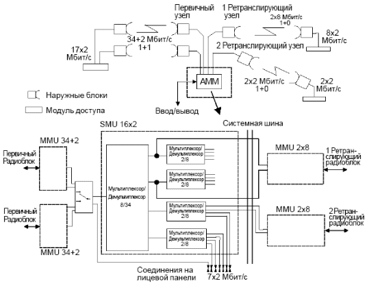 SMU 16x2 в сочетании с MMU 34+2 может оперировать с потоками 17x2 Мбит/с или 4x8+2 Мбит/с для одного терминала с конфигурацией 1+0 или 1+1.