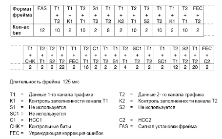 Рисунок 2.14 – Пример структуры фрейма канала радиосвязи для 2x2 Мбит/с