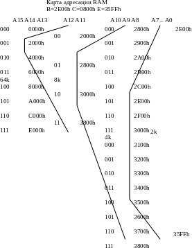 Рисунок 1.6 Диаграмма распределения разрядов шины адреса