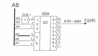 Нижним уровнем карты есть все адресное пространство в 256 байт. Три старших адресных разряда А7 - А5 делят пространство на 8 равных частей по 32 байта. В пространство адресов ВСН – А0Н вложен второй уровень адресов. Этот уровень разделён адресами А4 - А2 также на 8 частей, но уже по 4 байта. На этом уровне просто выделяются адреса адаптера. Третьим верхним вложенным уровнем адресов, являются физические адреса четырех адресуемых объектов адаптера. Сигнал CS адаптера выделяется двумя нижними уровнями карты, а логика его порождения совсем простая.
