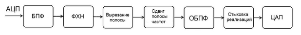 В реальном тракте структура дополняется блоками : предварительный усилитель , диапазонный фильтр и другие.