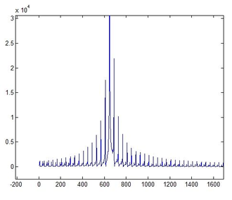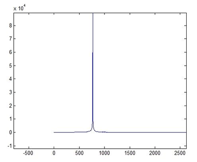 Рис. 14б. Спектр восстановленного сигнала после сдвига его полосы в частотной области на 3Δf. Перекрытие входных выборок 50%