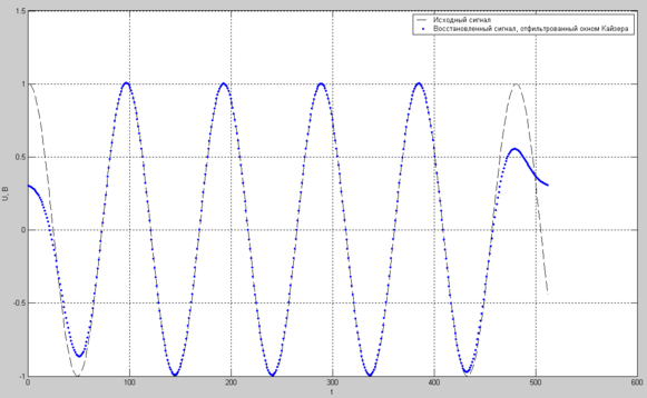 На рисунке 13 приведен результат восстановления сигнала при применении частотного окна Хэмминга: