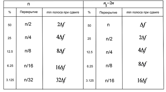 Таблица 1 . Взаимосвязь минимальной полосы частотного сдвига от величины перекрытия входных выборок
