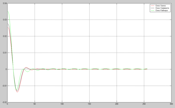 Рис. 11 ИПХ фильтров Ханна, Хэмминга, Кайзера