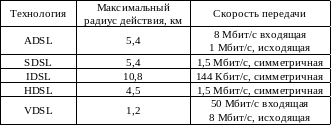 Таблица 4.1 Основные сравнительные характеристики технологий xDSL