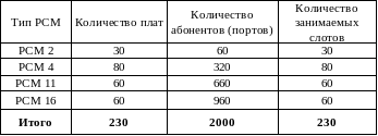 Определим необходимое количество оборудования цифрового абонентского уплотнения РСМ для 2000 абонентов. Универсальная системная кассета (субблок) фирмы Alcatel изготовлена в виде 19ти дюймового каркаса в соответствии со стандартом DIN 41 494, имеет на материнской плате 16 слотов для подключения систем РСМ и один слот для подключения модуля управления SMU. Панель с коннекторами, для подключения цифровых линий и станционных номеров, может находиться на фронтальной или тыловой панели подключения (опционально). В системной кассете могут смешанно, в любом порядке, устанавливаться 2х, 4х, 11ти и 16ти канальные системы РСМ. Необходимо учесть, что 11ти и 16ти канальные системы занимают два платоместа. Емкость системной кассеты имеет максимальное значение 128 абонентов, при 100% заполнении 16ти канальными системами, 88 абонентов при ее заполнении 11ти канальными системами и 64 абонента при заполнении системами РСМ 4. Системы РСМ 2 будем использовать в ограниченном количестве. Необходимое количество систем РСМ для развития 2000 абонентов указано в таблице 5.2