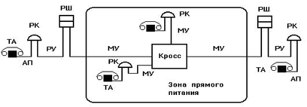 Магистральную сеть составляют кабели, соединяющие АТС с РШ, а также кабели, соединяющие АТС с РК в зоне прямого питания.