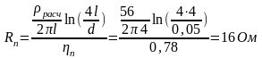 Рассчитаем сопротивление одиночного заземлителя растеканию тока по фомуле: