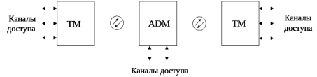 Оконечный (терминальный) мультиплексор (Terminal Multiplexer - TM) –оконечное устройство сети с некоторым числом каналов доступа и одним или двумя оптическими входами/выходами, называемыми агрегатными портами или интерфейсами.