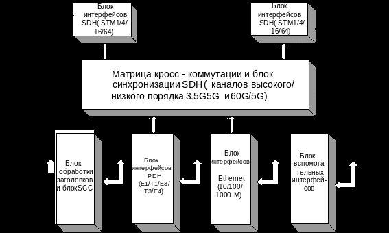 Используя на центральном уровне матрицу кросс-коммутации SDH, оборудование OptiX OSN 3500 состоит из блока интерфейсов, блока SCC, блока обработки заголовков и вспомогательного блока интерфейсов. На рисунке 6.1 представлена структура системы OptiX OSN 3500. Функциональные и подчиненные платы соответствующих блоков приведены в таблице приложение В.
