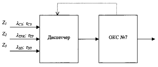 Простейшая модель канала передачи данных между SSP и SCP и обратно, представляет одноканальную СМО, в которой обрабатываются три потока сообщений: