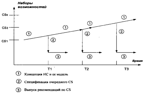 Отметим, что ITU-T активно ведет работы по спецификации наборов CS-2 и CS-3 для широкополосных сетей, где также рассматриваются способы интеграции концепций ИС с сетью управления телекоммуникациями TMN. При спецификации очередного CS предполагается обратная связь с предыдущими этапами для внесения изменений в процесс эволюции ИС (рисунок 4.3).