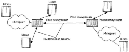 По разным причинам операторы сетей IP-телефонии для объединения своих устройств в сети могут использовать выделенные каналы и сеть Интернет. Такие сети называются сетями смешанного типа (рис. 1.4.). Вопрос о том, какие каналы использовать для связи устройств между собой, решается оператором индивидуально в зависимости от возможностей.