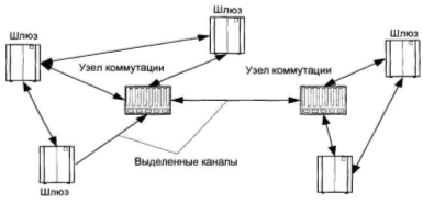 В выделенных сетях (рис. 1.2.) связь между оконечными устройствами осуществляется по выделенным каналам, и пропускная способность этих каналов используются только для передачи речевых пакетов.