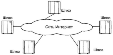В интегрированных сетях IP-телефонии для связи между устройствами используется глобальная сеть Интернет (рис. 1.3.). Это может быть уже существующая собственная сеть или доступ к сети Интернет через провайдеров. Если оператор имеет собственную сеть Интернет, то для предоставления услуг IP-телефонии он лишь устанавливает дополнительное оборудование, которое обеспечивает преобразование речи в данные и наоборот, и модернизирует уже имеющееся оборудование, чтобы обеспечить качество предоставляемых услуг. Если оператор IP-телефонии пользуется услугами провайдеров Интернет, то качество услуг такой сети может быть низким, так как обычные сети Интернет не рассчитаны на передачу информации в реальном масштабе времени.