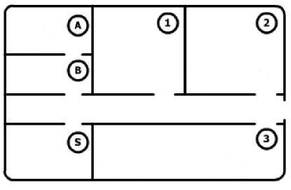 Темою мого дипломного проекту є організація локальної обчислювальної мережі агентства нерухомості. Згідно вихідних даних, є шість кабінетів (рисунок 1), 12 персональних комп'ютерів, два принтери. Агентство нерухомості має три підрозділи в кабінетах 1, 2 й 3. Кабінет директора й секретаря розташовані в кабінетах А и В відповідно. Серверну передбачається розмістити в кабінеті S.
