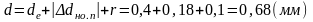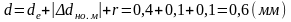 где dе – диаметр вывода элемента, dе= 0,4 (мм), выбранный