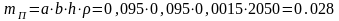 где - плотность стеклотекстолита (=2050 кг/м3), а*b*h – размеры печатной платы (берутся из чертежа печатной платы).