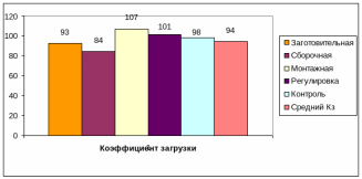 Рассчитав, коэффициент загрузки каждой операции и средний коэффициент, для наглядности строю диаграмму загрузки рабочих мест.