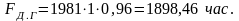 где Fн.г – номинальный фонд рабочего времени за год, Fн.г = 1981 час.