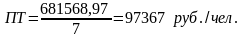 4.2.2 Определим производительность труда на одного основного рабочего, ПТ, руб/чел., по формуле:
