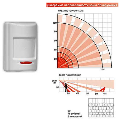 Рисунок 8. Внешний вид датчика и его диаграмма направленности зоны обнаружения