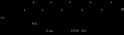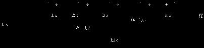 Широкополосные трансформаторы на линиях типа ±(1:n) с минимальным числом линий, построены по тому же принципу, что и ШТЛ 1:n. При этом использовано аналогичное топологическое изображение, что и для ШТЛ 1:n, только введенная третья цифра означает значение нормированного напряжения на проводниках линий. В качестве примера на рис. 1.4.3 показан ШТЛ ±(1:11). Обеспечивая при каждом соединении составляющих узлов передачу максимально возможной суммы напряжений с выхода предыдущего узла на вход последующего узла, получаем ряд наибольших коэффициентов трансформации при задаваемом числе составляющих узлов. Этот ряд наибольших коэффициентов трансформации, для которого каждый последующий член равен сумме предыдущего и удвоенного значения члена, стоящего перед предыдущим (учитывая, что первых два члена равны единице), имеет вид: 3, 5, 11, 21, ...