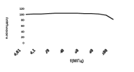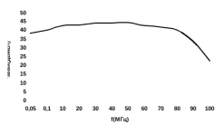 Рис.5.6. Зависимость величины динамического диапазона ДКЗ по интермодуляциии третьего порядка от частоты усилителя.