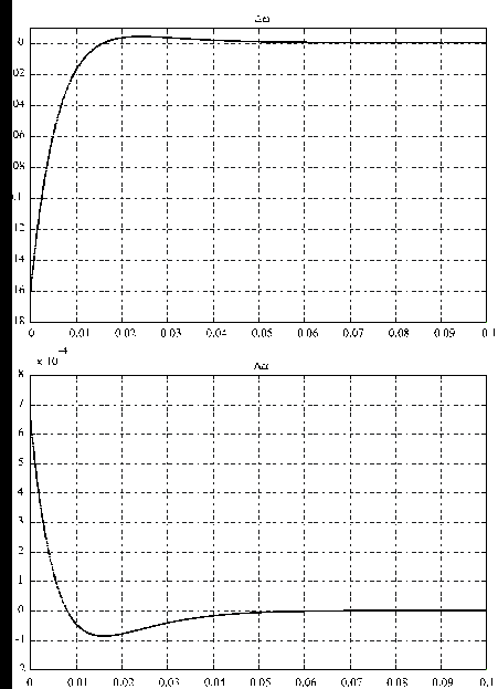 Рисунок 2.4 - Графики изменения ошибок по углу и скорости электропривода с аналоговым регулятором.