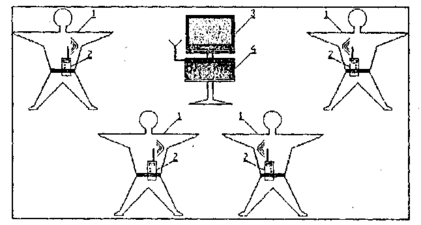 Система дистанционного мониторинга параметров центральной гемодинамики согласно рисунку 1.1 включает в себя носимый пациентом 1 портативный реокардиомонитор с приемопередатчиком 2, осуществляющий измерение и передачу реограмм и электрокардиограмм с единой электродной системы, а также центральный монитор 3 и базовую станцию 4, обеспечивающие прием, обработку и визуализацию полученных данных в реальном масштабе времени. Разработанный радиотелсметрический протокол с временным разделением каналов позволяет мониторировать одновременно до четырех пациентов.