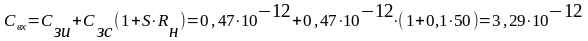 Используя справочные данные транзистора, выбранного в качестве усилительного элемента, по выражению (3.5) находим Свх.