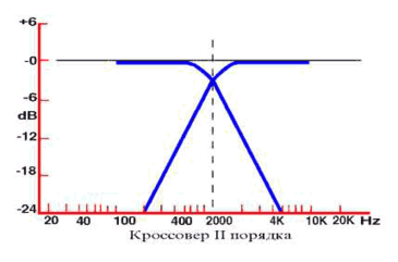 Однако фильтры первого порядка обеспечивают слишком малое затухание за пределами рабочей полосы, поэтому пригодны только при небольшой подводимой мощности или достаточно высокой частоте раздела (7-10 кГц). Поэтому в большинстве серьезных конструкций используют фильтры более высоких порядков, от второго до четвертого.