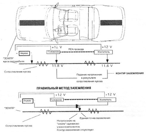 I. Отсоедините головное устройство от аудиосистемы. Если шум прекратился - заземлите головное устройство в общую точку на корпусе, куда заземляются остальные компоненты системы.