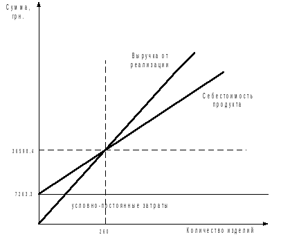 При анализе безубыточности производства товара определим объем производства товара, при котором выручка от продажи товара покрывает постоянные затраты.