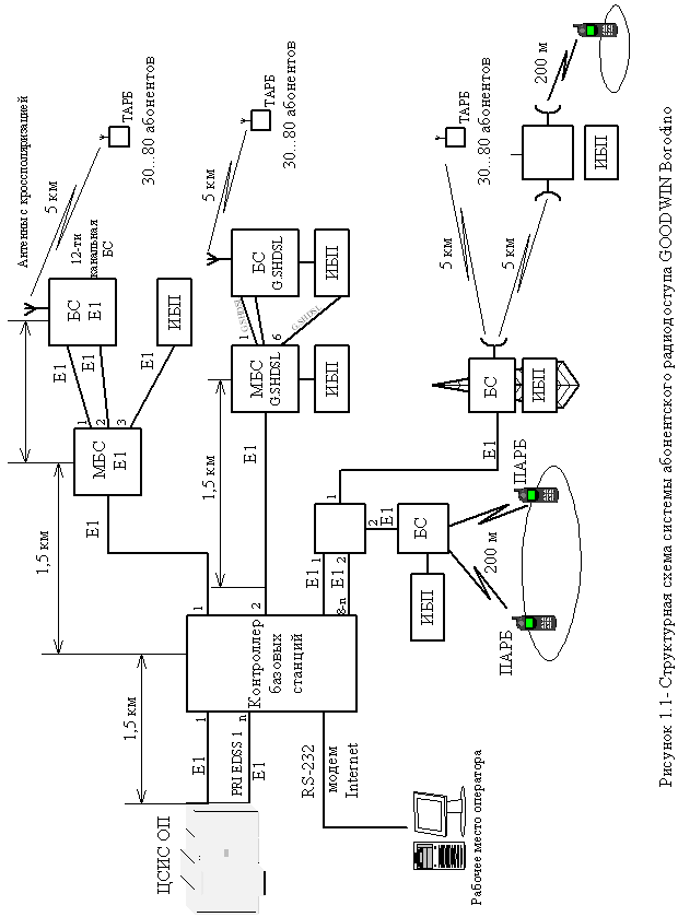 На рисунке 1.1 представлена схема организации связи в системе GOODWIN Borodino с одним контроллером базовых станций.
