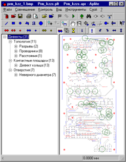 Після сканування чергового зразка Aplite автоматично перетворює його в бінарну форму, відкриває необхідний еталон і здійснює первинне суміщення шаблону й еталона. Після цього запускається автоматична процедура виявлення дефектів, що включає точне поєднання зразка та еталону, контроль топології і контактних майданчиків. По завершенні процесу користувачеві видається звіт.