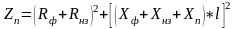 Полное сопротивление петли «фаза-нуль» вычисляется по следующей формуле :