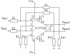 Рис. 3.7. Типовая схема включения операционного усилителя К157УД2