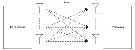 Технология MIMO (Multiple Input Multiple Output) предполагает применение нескольких передающих и принимающих антенн. По аналогии традиционные системы, то есть системы с одной передающей и одной принимающей антенной, называются SISO (Single Input Single Output).