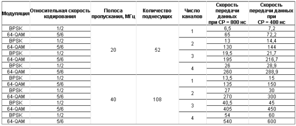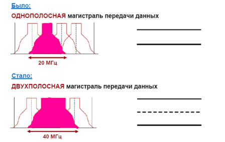- увеличение полосы частот сигнала с 20 до 40 МГц;