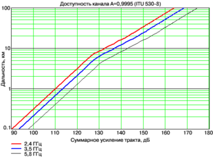 Для определения дальности связи необходимо рассчитать суммарное усиление тракта и по графику определить соответствующую этому значению дальность. Усиление тракта в дБ определяется по формуле: