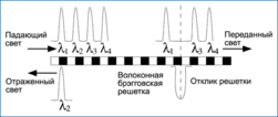 Рисунок 2.3 Волоконная брэгговская решетка выделяет из составного сигнала канал определенной длины волны.